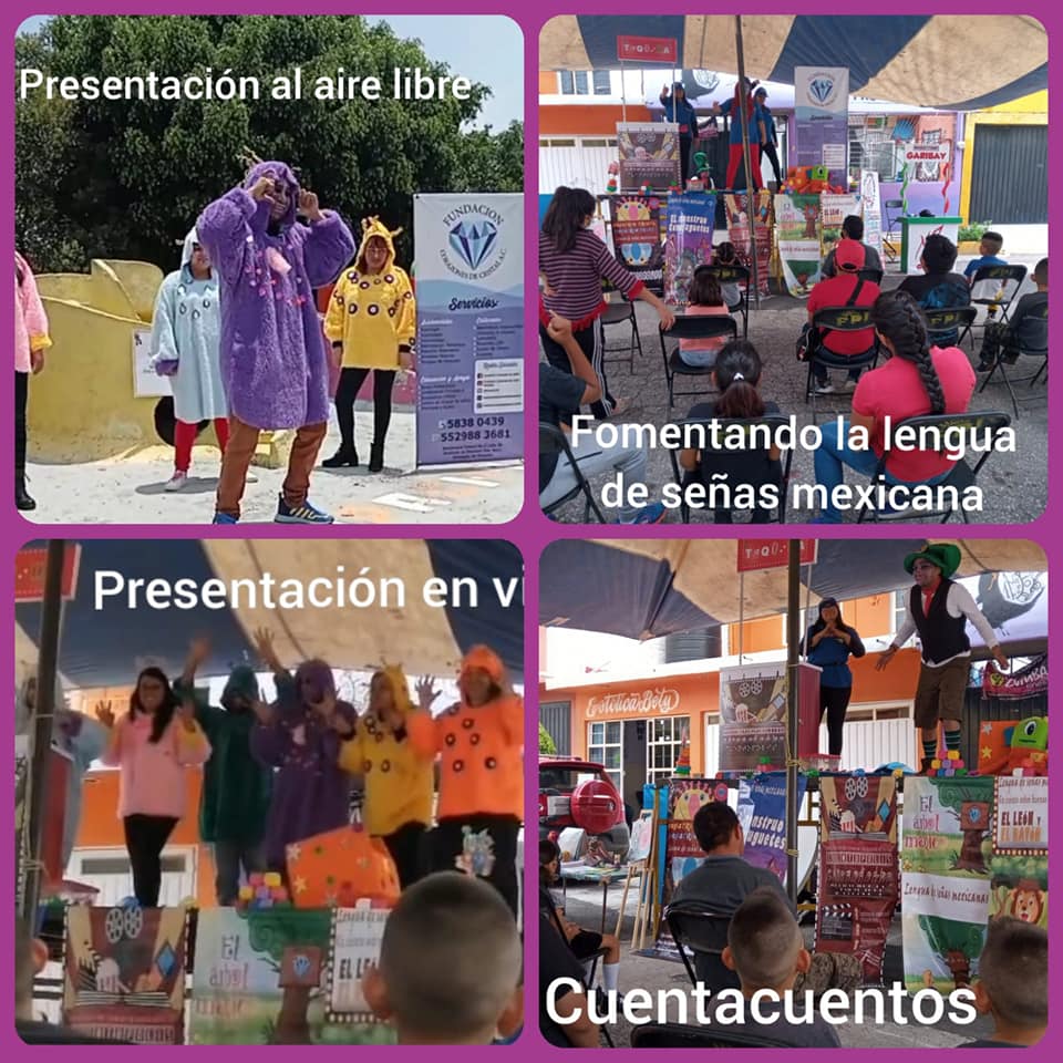 Buscamos la inclusión para la comunidad con discapacidad auditiva y visual, brindando un abanico de presentaciones artísticas en lengua de señas mexicanas que buscan un desarrollo a través del fomento del arte y la cultura
